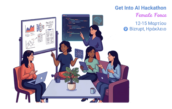 Έλα στο Get Into AI Hackathon | Female Force. Ένα εντατικό 4ήμερο Hackathon, όπου θα μάθεις πώς να χρησιμοποιείς τα πιο σύγχρονα AI εργαλεία για να λύνεις προβλήματα, να αυτοματοποιείς την εργασία σου και να δημιουργείς καινοτόμα projects. Κάνε αίτηση έως 11/03!